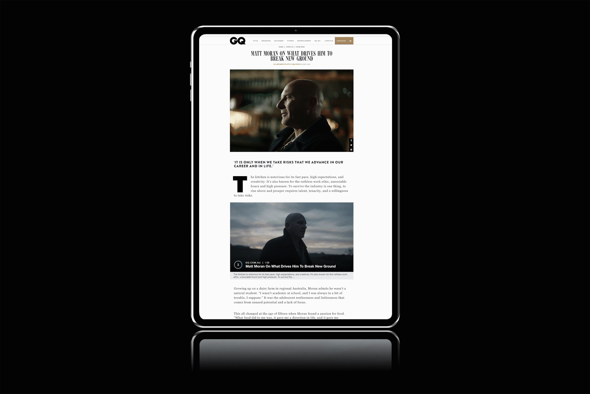 Led creative development for Glenfiddich’s partnership with GQ — a campaign celebrating innovation through the lens of two Australian visionaries: chef and restaurateur Matt Moran, and architect Koichi Takada. Oversaw campaign direction, video production, and editorial content, aligning brand values of boldness, refinement, and creativity with personal storytelling.